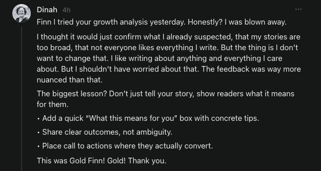 • 🔍 See your writing like an investor sees a portfolio - identify your Dynamos, cut the Dead Weight, and double down on what’s quietly compounding.